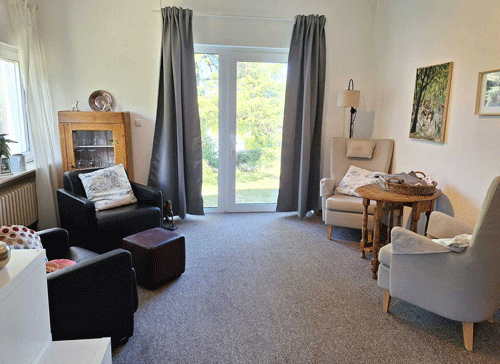 Am Nachmittag zwischen 14:30 und 15:30 sitzt man bei Kaffee und Kuchen gemeinsam in der Küche oder im Garten.