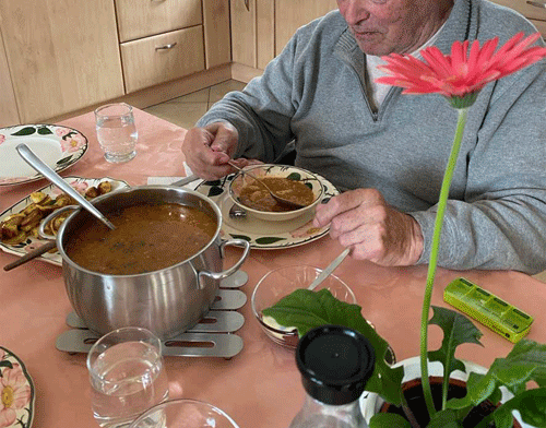 Dabei wird oft gemeinsam gesungen, während die Pflegekraft das Mittagessen vorbereitet und den Haushalt erledigt.